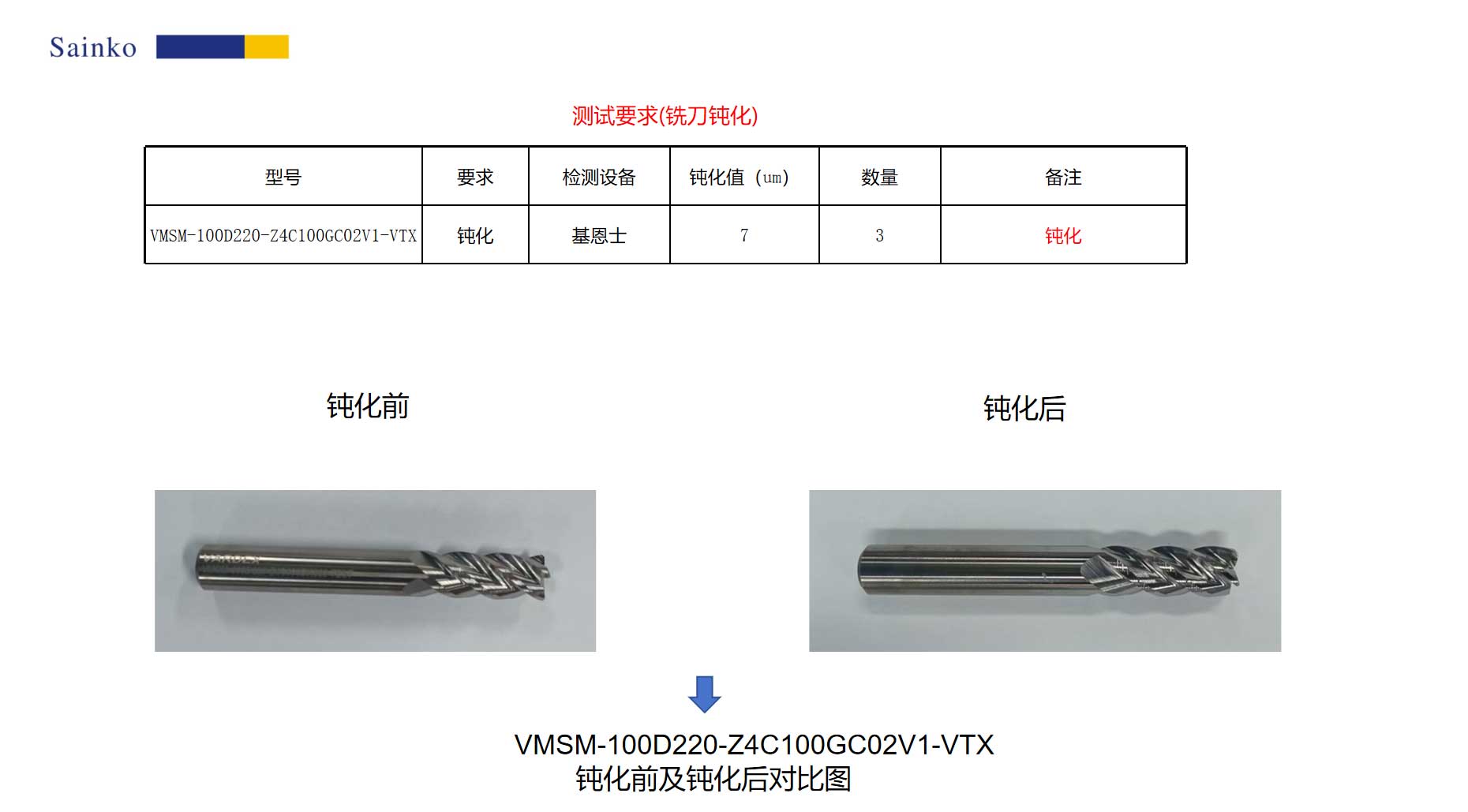 本次測(cè)試樣品為客戶提供的銑刀,共計(jì) 3 件,核心需求為銑刀鈍化處理,且明確鈍化值需達(dá)到 7μm 標(biāo)準(zhǔn)。為精準(zhǔn)滿足需求,我司采用PL-24AX鈍化設(shè)備,并搭配15000-L型號(hào)磨料開(kāi)展加工:通過(guò)設(shè)備對(duì)鈍化轉(zhuǎn)速、壓力等參數(shù)的精準(zhǔn)調(diào)控,結(jié)合磨料的精細(xì)研磨作用,終 3 件銑刀的鈍化值均穩(wěn)定達(dá)到 7μm 預(yù)設(shè)要求,同時(shí)消除了刃口原始存在的鋸齒與毛刺。經(jīng)后續(xù)驗(yàn)證,鈍化后的銑刀在切削加工過(guò)程中,不僅能顯著提高加工產(chǎn)品的表面質(zhì)量,還優(yōu)化了切屑排出效果,有效減少切屑堆積、劃傷工件的問(wèn)題,具體測(cè)試結(jié)果詳見(jiàn)本報(bào)告。