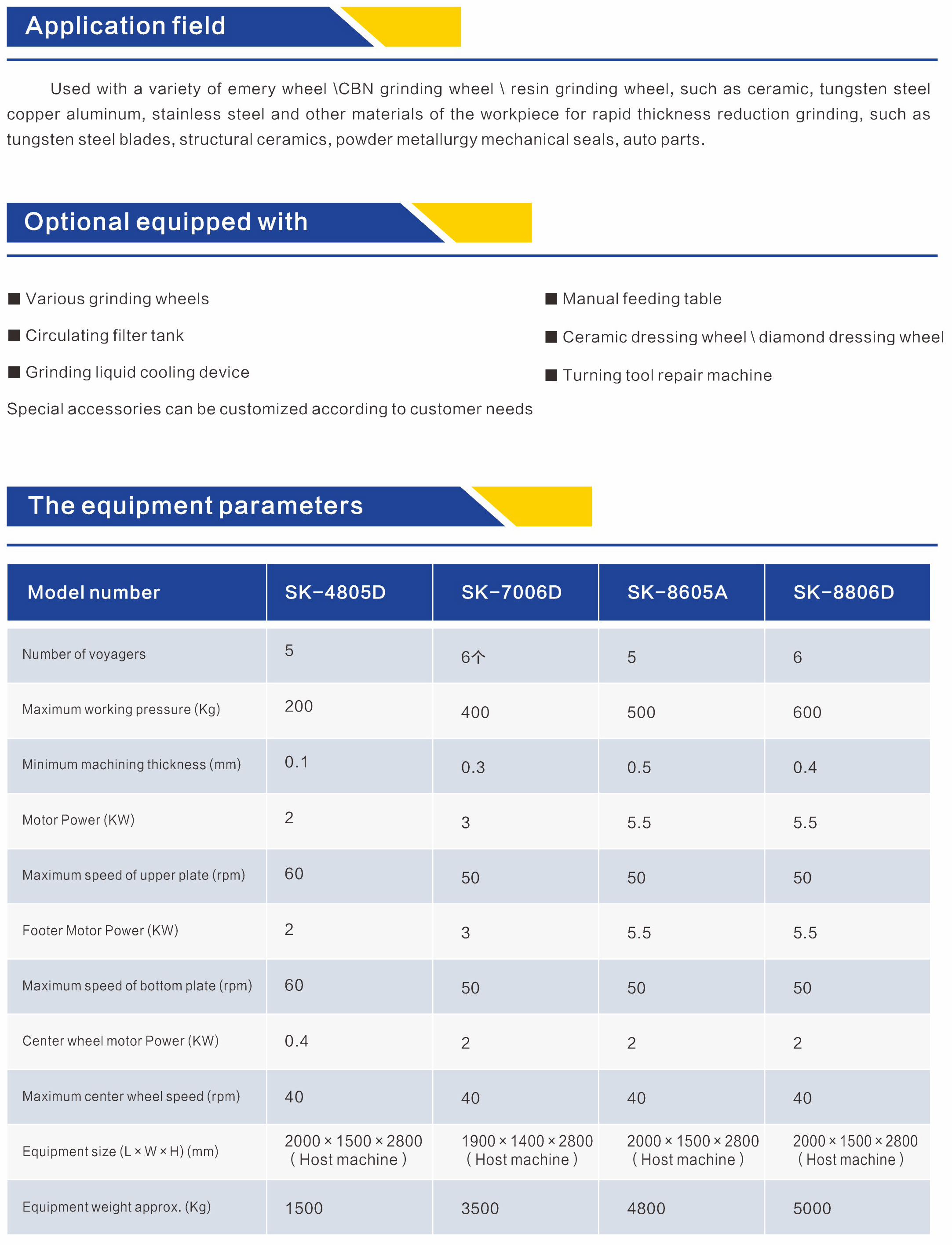 ■ The center wheel height is 70mm, the lifting stroke of the gear ring is 100mm, and the 50mm thick grinding wheel can be installed;