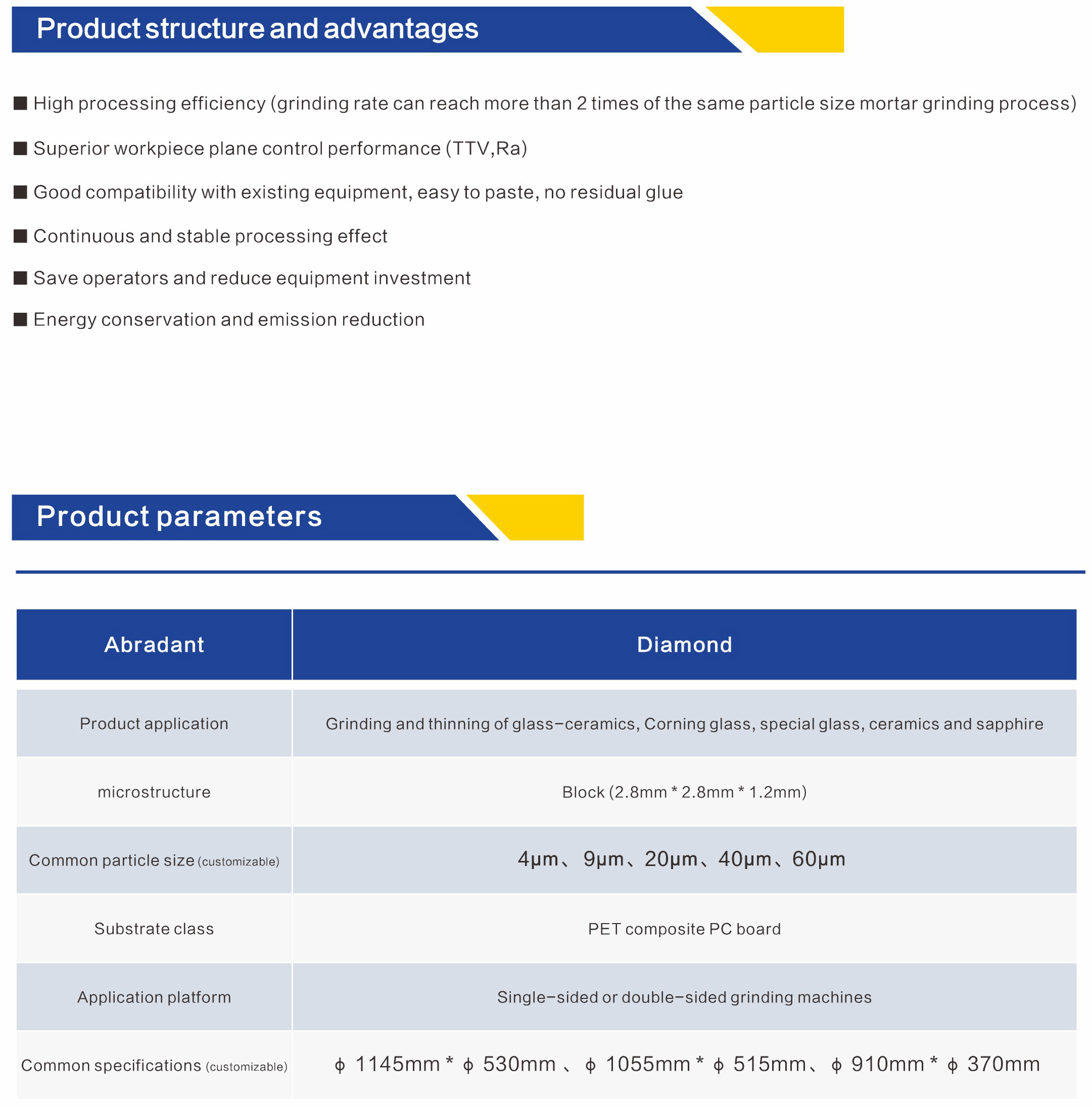 Shengko diamond grinding mat is the best solution for electronic precision grinding, curently commonly used 5 types, according to the particle size is divided into 4mic, 9mic, 20mic, 40mic, 60mic (can be customized), mainly used in glass-ceramics, Corning glass, mobile phone glass cover plate reduction, camera protection back cover reduction, optical flat glass, optical flat glass, optical flat glass, optical flat glass, optical flat glass, optical flat glass,optical flat glass, optical flat glass. Sapphire window sheet, silicon carbide semiconductor sheet, ceramic sheet, and a variety of mixed products cold processing, grinding thinning.